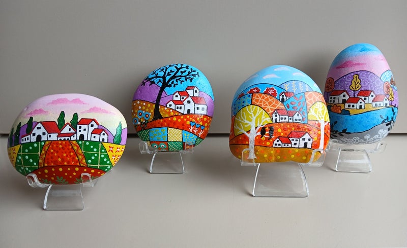 Sinds enkele jaren beschildert Herma stenen. Naast haar favoriete Toscaanse landschappen maakt ze ook allerlei andere afbeeldingen.